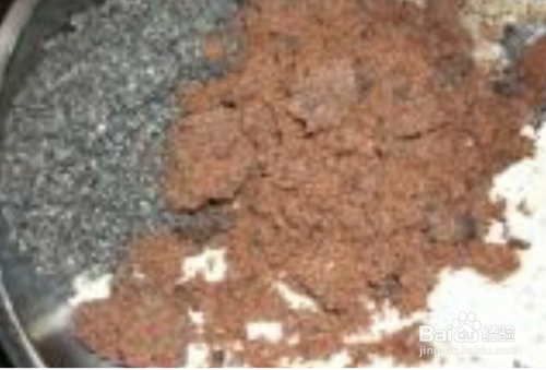 紧接着把烤好的芝麻放进榨汁机或者是搅拌机或者具有类似功能的机器里打碎,花生和核桃也是这样处理,这是打好的芝麻