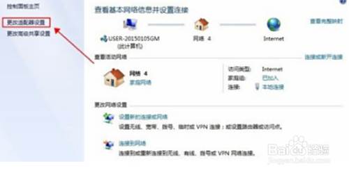 在“打开网络和共享中心”里面选择"更改适配器设置".