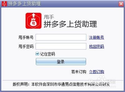 拼多多海淘商家在甩手拼多多上货助理抓取商品之前,需先登录上货工具。