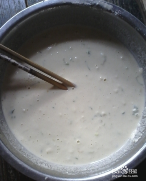 然后开始加入适量清水,搅拌成糊状,不能太稠,也不能太稀。(水慢慢加,如果稀了,再加点面粉,稠了加水)