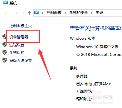 属性界面点击设备管理器,如下图所示