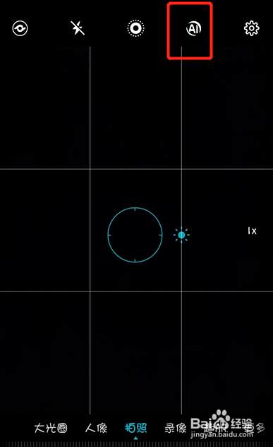 我们打开手机中的相机,在相机界面的上方从右数第二个图标,该图标为“AI”文字图标,我们点击这个按键就可以关掉我们的AI模式了,这个时候我们再拍照是不是就感觉好很多了呢?