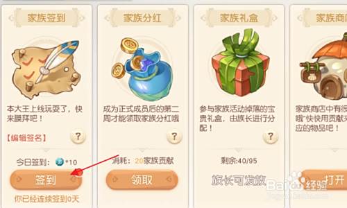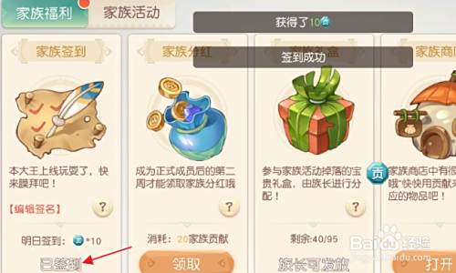 这个时候,我们就完成了家族签到,获得了家族贡献度。