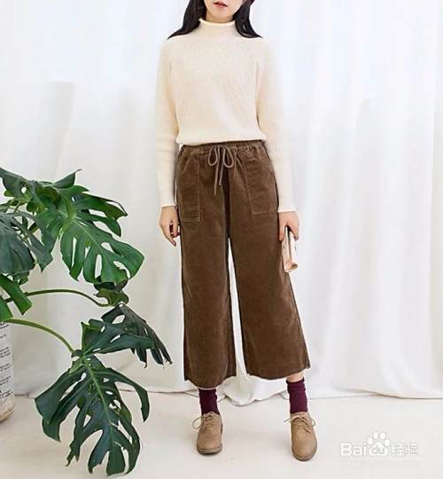 搭配五:咖啡色九分阔腿裤+米白色毛衣