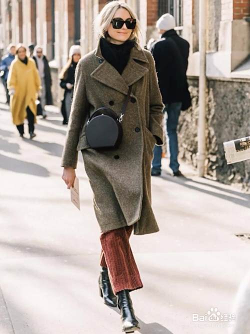 咖啡色本身是暖色调,适合搭配相同色系或者暗色,不适合搭配饱和度很高的亮色,咖啡色灯芯绒阔腿裤上身可以搭配一件灰色大衣,内搭一件黑色高领毛衣,保暖又很显大气。