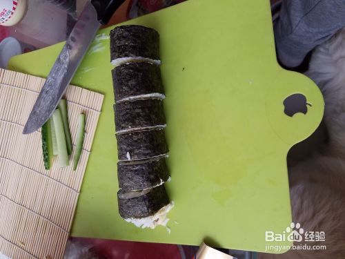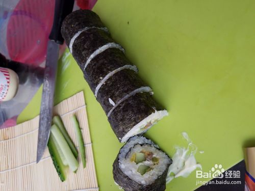 切寿司其实很简单,要先切左面的,和平时切菜的方向相反。这样就不会散,用一般的刀就可以搞定了。