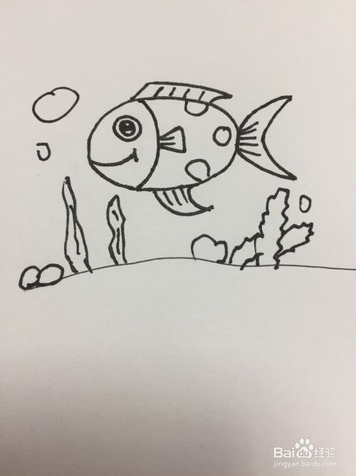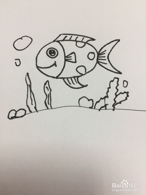 最后画上海草和水泡泡,简笔画鱼完成