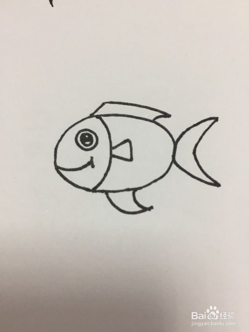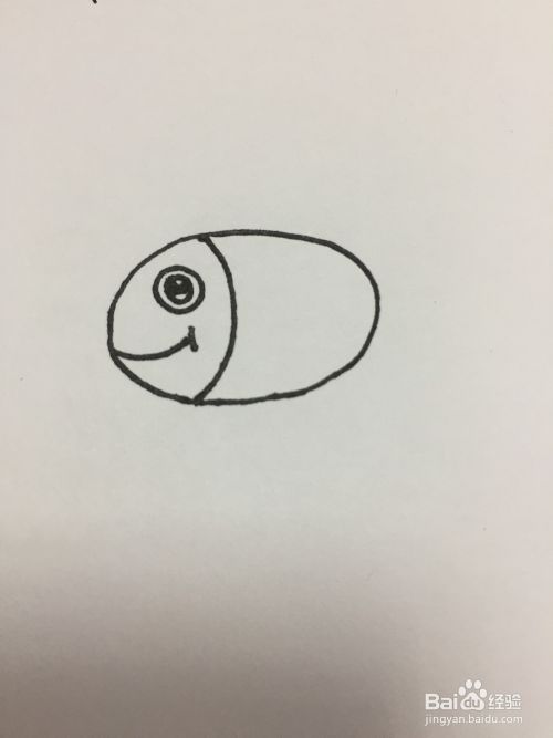 如图,先画小鱼的身子,一个简单的椭圆形