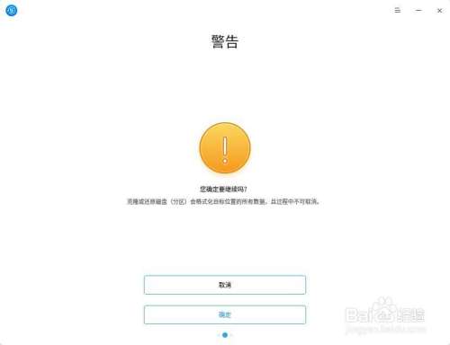 2.2.3 查看界面提醒,确认目标磁盘的数据安全后,点击“确定”。
