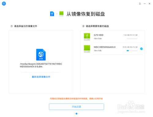 (1) 使用深度备份还原工具执行克隆和还原操作,可能会删除目标磁盘或分区的所有数据,请注意界面的警示提醒,确认后再进行操作。