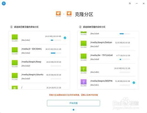 3.2 选择要克隆的原始分区和被克隆的目标分区,点击“开始克隆”。
