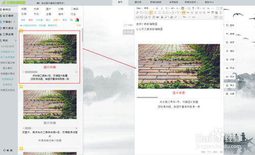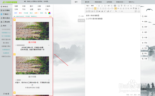 选择想要的样式素材进行点击使用,中间的编辑区域就会出现选择的样式素材;