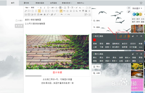 鼠标进行选中样式,旁边就会出现样式工具条,可以对样式进行更改设置;点击“+1”或者“-1”可以更改图片的数量;