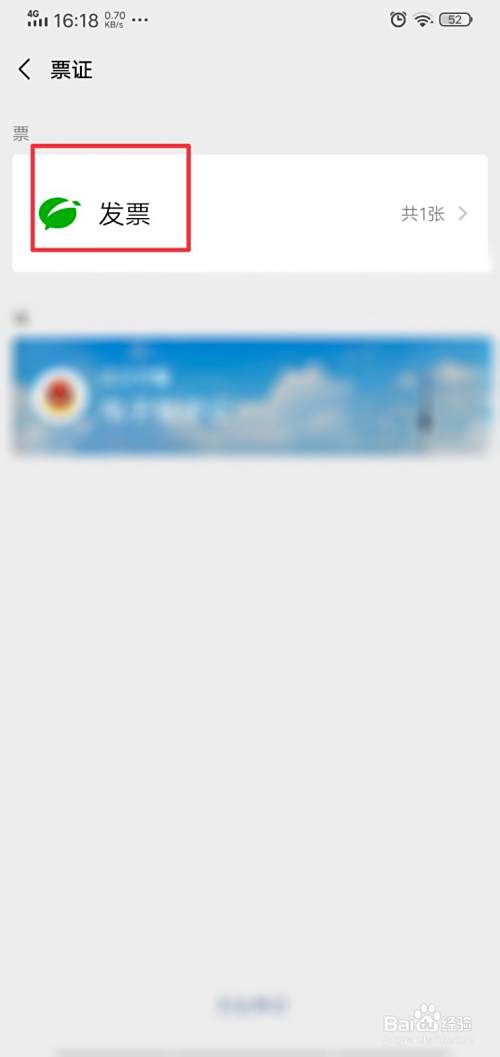 进入票证界面后,我们就看到一个“发票”功能选项,我们点击“发票”选项。