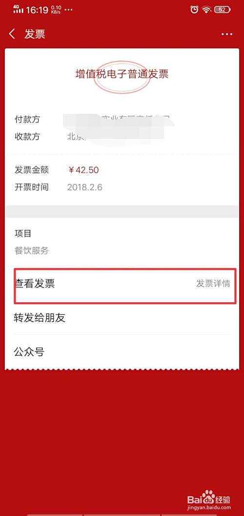进入发票界面,我们点击“查看发票详情”,这时该电子发票就显示出来了。