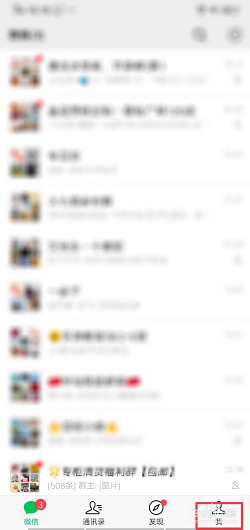 登陆微信首页,在首页右下角点击“我的”功能选项。