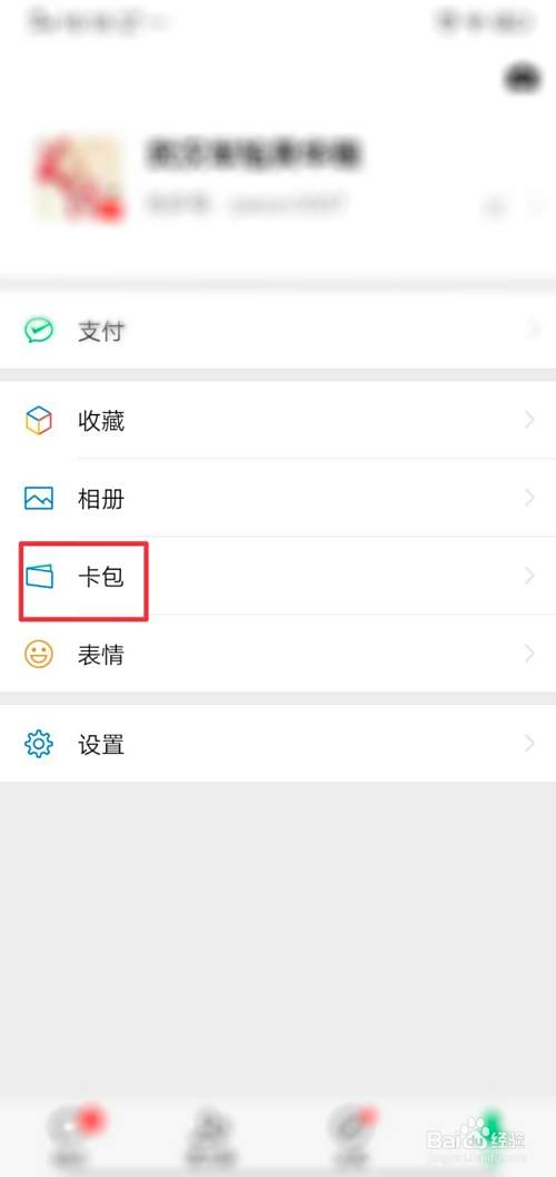 出现功能界面,点击“卡包”功能选项,如下图所示。