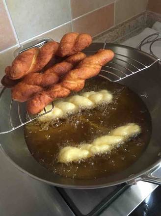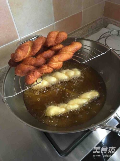 锅中倒入适量油,将麻花放入锅中炸至变色。