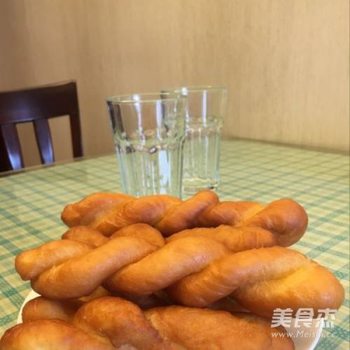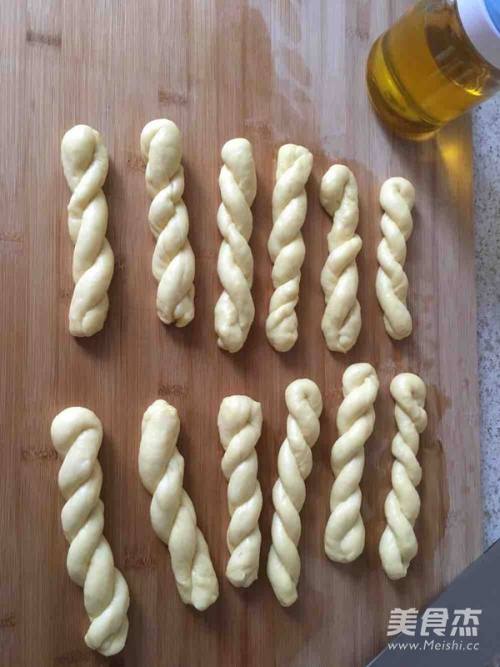 手上蘸取少量油,将发好的面分成等份,拧成麻花形,继续发十至二十分钟。