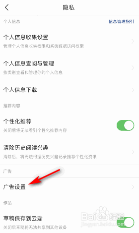 然后点击广告设置。