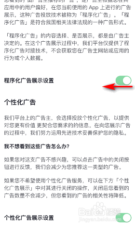 之后将程序化广告展示设置的滑动按钮向左滑动,滑动完成后便可以关闭程序化广告展示。