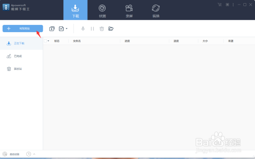 打开已经下载好的视频软件(如果没有下载的可以点击下面“链接”下载)点击“粘贴地址”。如图所示: