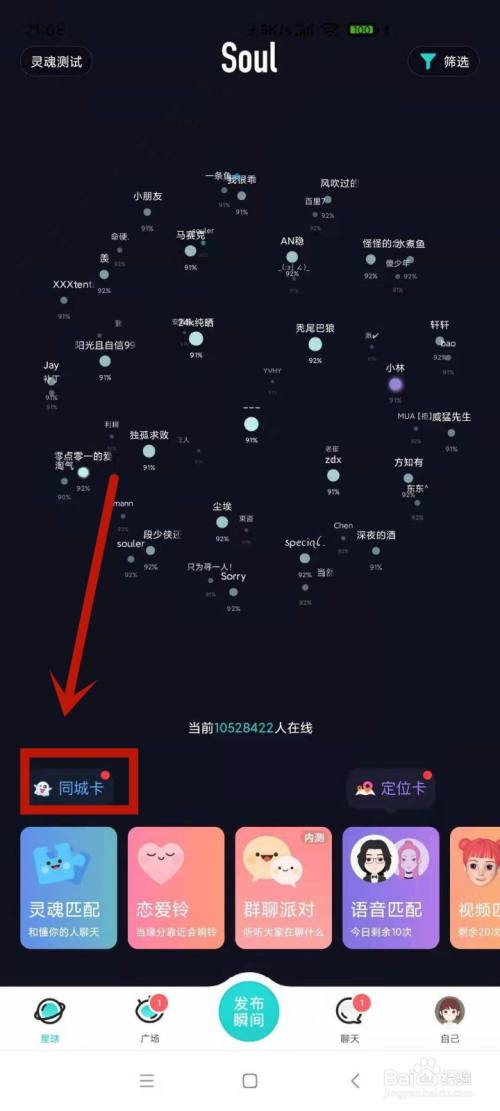 在soul首页,点击页面的同城卡。
