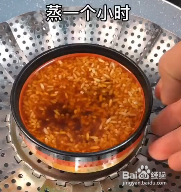 第九步 将红糖糯米放进蒸盘用大火煮开,然后小火蒸一个小时