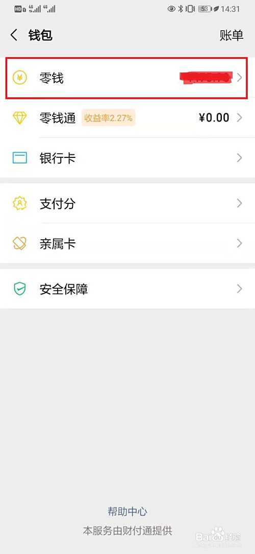 进入支付页面,打开【零钱】-》【钱包】,如下图所示。