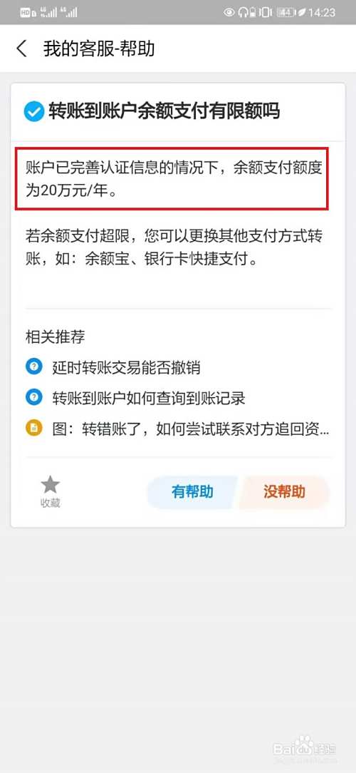 在客服服务页面,通过客服回复信息可以知道【支付宝余额支付年限额是20万/年】。如下图所示。