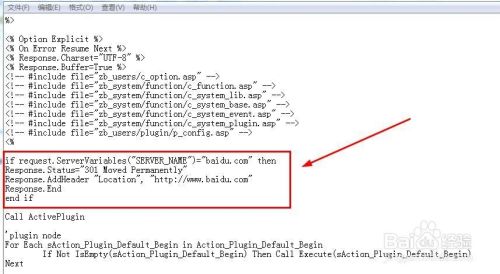 首先在zblog网站根目录下找到 default.asp 这个文件并打开编辑,将以上301重定向代码加入到default.asp,具体位置请看下图,
