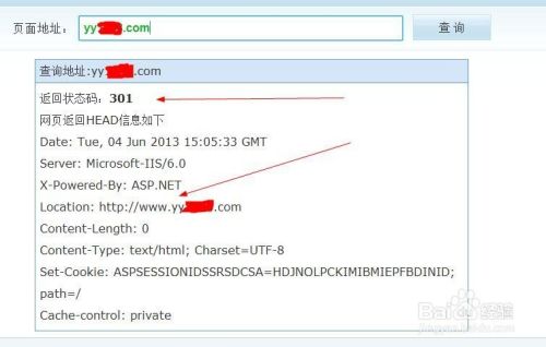编辑完毕提交或者上传,最后检查一下是否成功重定向,在站长工具查一下,点页面HTTP状态查询,输入不带www 的网址。如出现下图,说明已成功实现301重定向。