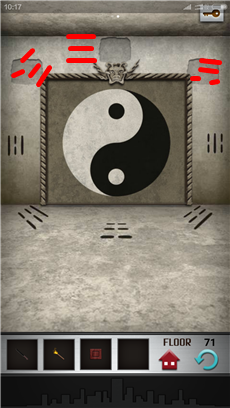 此关上来就有提示:太极八卦,八卦是讲究对称的,这点稍微有些国学基础的人都明白,长线为阳爻,双短线为阴爻,长对应短,短对应长即可顺利过关。
