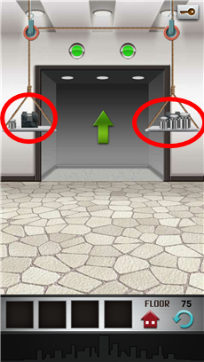 毫无疑问,此关是砝码题,中学时代我们经常计算这样的问题,只需要把两边重量调成一致即可过关,先把右侧的砝码取下来,然后再按照下图的提示摆放,大门即可打开。