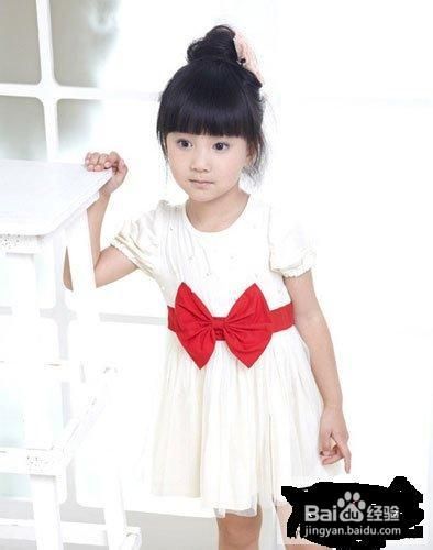 小编点评:齐刘海是打扮小女孩的绝招,在这款发型中,将齐刘海与花苞头相结合,让秀发蓬松凌乱,再戴上一款可爱的发饰,又呆又萌的小女孩形象瞬间显现在眼前。再搭配一条清新的小白裙,腰间配上大红色蝴蝶结腰带,瞬间秒杀众人