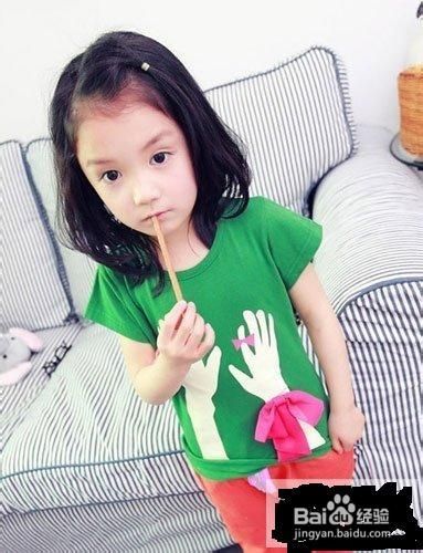 点评:如果妈妈们没有足够的时间打扮小女孩,也可以在小女孩的侧分刘海上随意撩起一缕头发,扎一个简单的马尾辫,这样的简单发型也可以让小女孩尽显天真可爱。除了充满创意的发型外,妈妈们还可以在服饰搭配上花一点心思,只要搭配好,就可以让简单的造型拥有不简单的魅