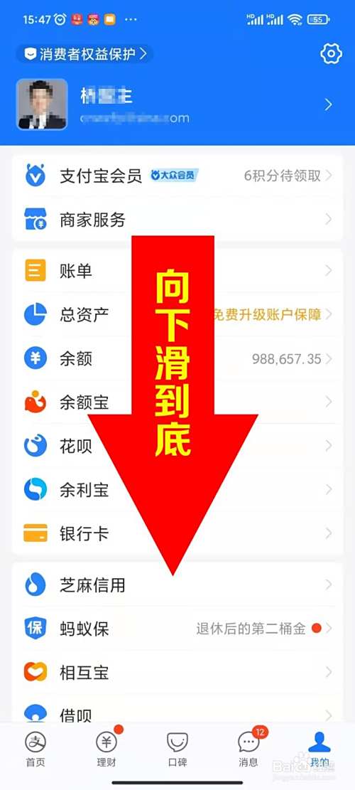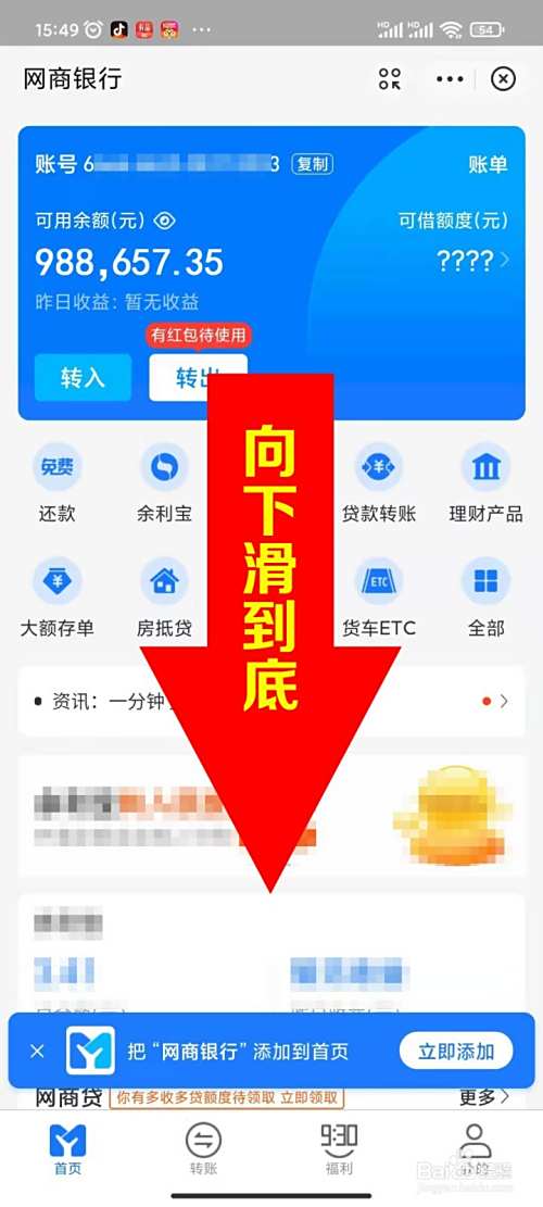 在网商银行页面处,把页面一直向下滑到底。【下方如图所示】