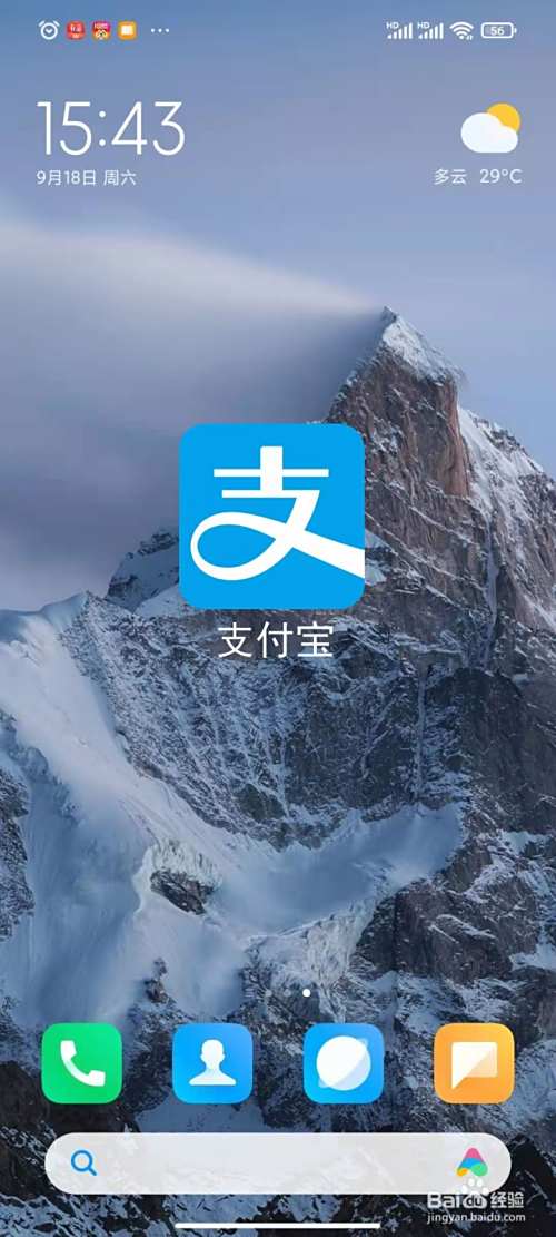 首先,我们在手机界面里找到“支付宝”应用APP,并单击打开它。【下方如图所示】