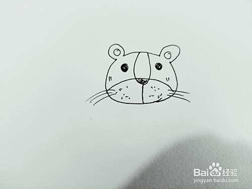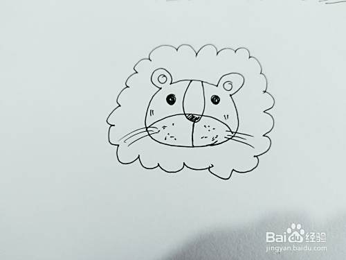 第三步,我们来画卡通狮子的两边的胡须,还有两只大眼睛,如下图