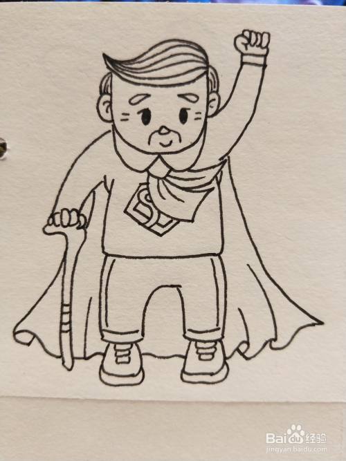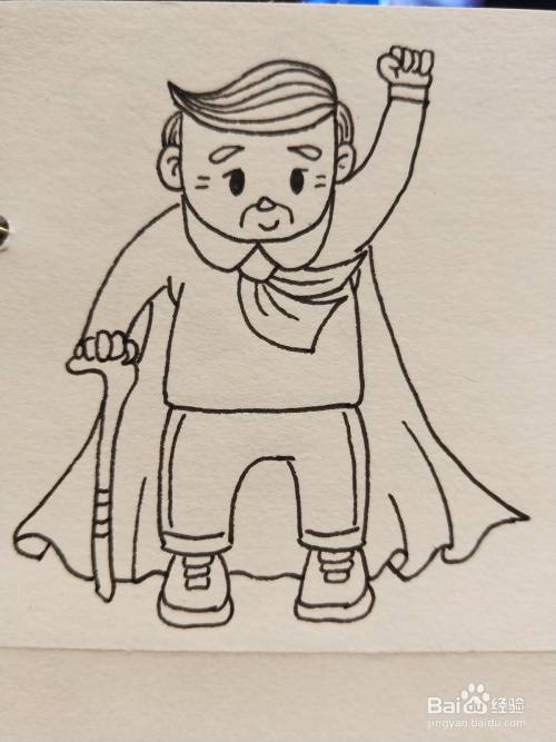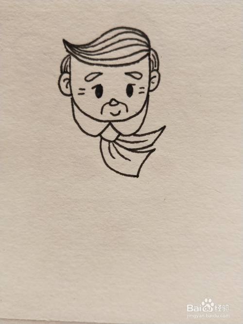 画出爸爸的五官和皱纹,在脸部下方画出衣领和披风的飘带。