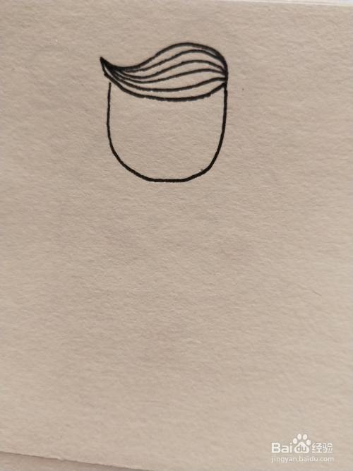 首先画出一个“U”形的脸部,在脸部上方画出一缕头发。