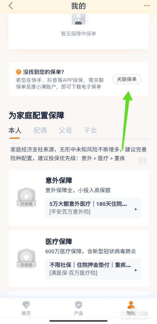 在我的页面,点击关联保单。