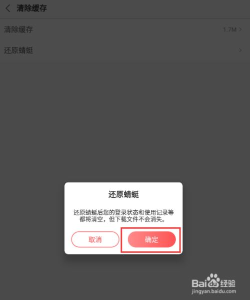 弹出如下图界面,提示是否还原,点击确定按钮,这样就还原了蜻蜓APP的登录状态和使用记录。
