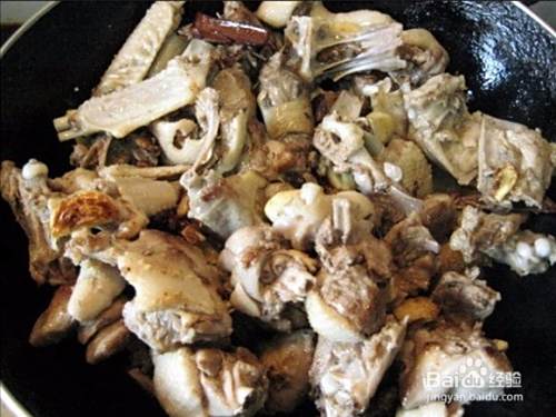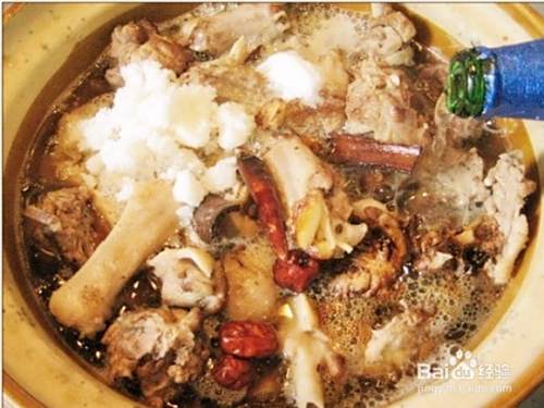 把煸炒后的鹅块倒入沙锅,加入酱油,醋(少许),盐,白糖,红枣,啤酒(如果是整只鹅要加2瓶)。