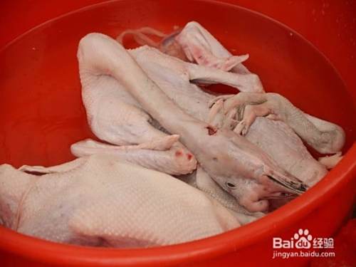 将买回来的鹅清洗干净,一般清洗两遍就可以了。