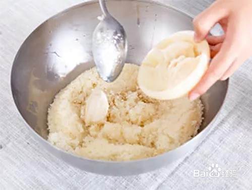 取一干净的碗,刷上一层猪油(适量),普通的油也可以