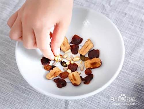 把准备好的果脯放碗里,造型可以按自己的喜好随意摆放