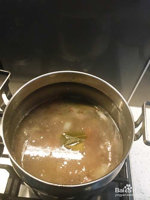 把炒香的洋葱和肉加到焖烧锅中煮,锅中的水和香叶已经烧开。放入一小匙的食盐使牛肉入味,大约煮10多分钟.如果是砂锅或者普通汤锅,需要大约45分钟,把肉慢火煮熟再放盐