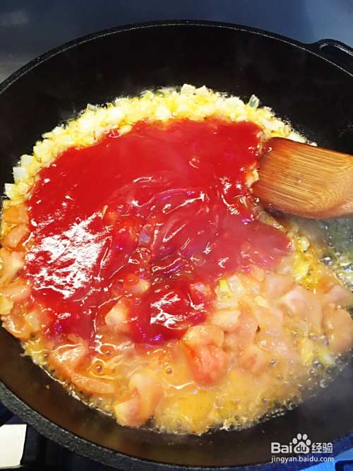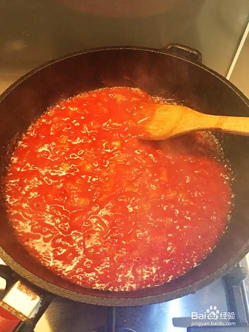炒约5分钟后,番茄酱的颜色更红香味浓郁即可