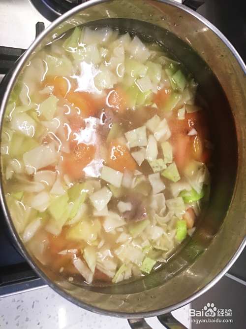 把土豆胡萝卜番茄洋白菜放入焖烧锅中,煮开后关火放入焖烧锅中,盖上盖子焖煮。记得番茄和土豆都是先放一半